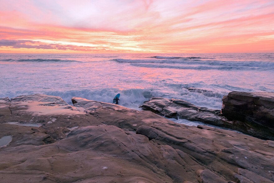 Lone surfer at Windansea as the sun sets