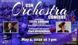 The orchestra will perform works by Fanny Mendelssohn-Hensel, Jaques Ibert, and Ludwig van Beethoven, conducted by Tyler Gordon. CSN flute professor Clare Birmingham will be the soloist in the finale of Ibert’s Flute Concerto.