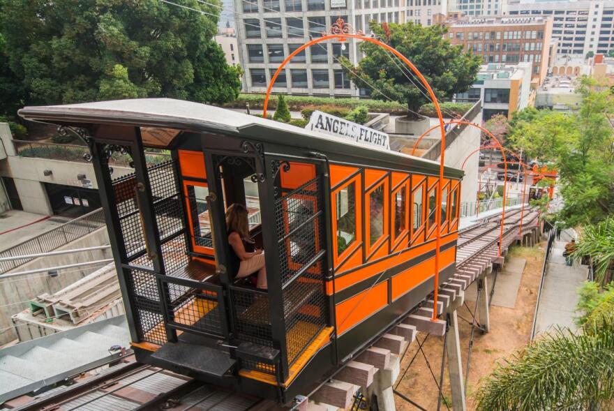 Directly across from Grand Central Market, hop one of the bright orange cars of Angels Flight Railway (350 South Grand Avenue or 351 South Hill