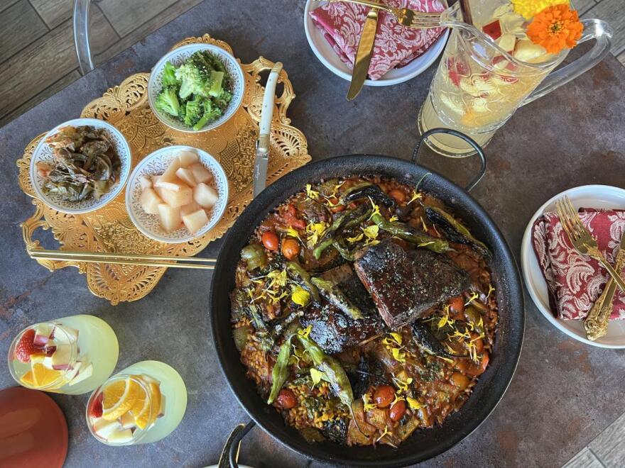 AS WITH MANY other ideas, the Seoul of Spain came out of a late-night dining and drinking dash. Some beers, some soju, and some Korean barbecue — what more does one need for inspiration? “I love the flavors of Korean food. I love kimchi fried rice,” says Jeffrey Weiss, chef of Valencian Gold, whose specialty is paella. “Bibimbap is one of the things we've talked about as a Korean cousin to paella. We thought, ‘How do we take these flavors and turn them into a paella?’”