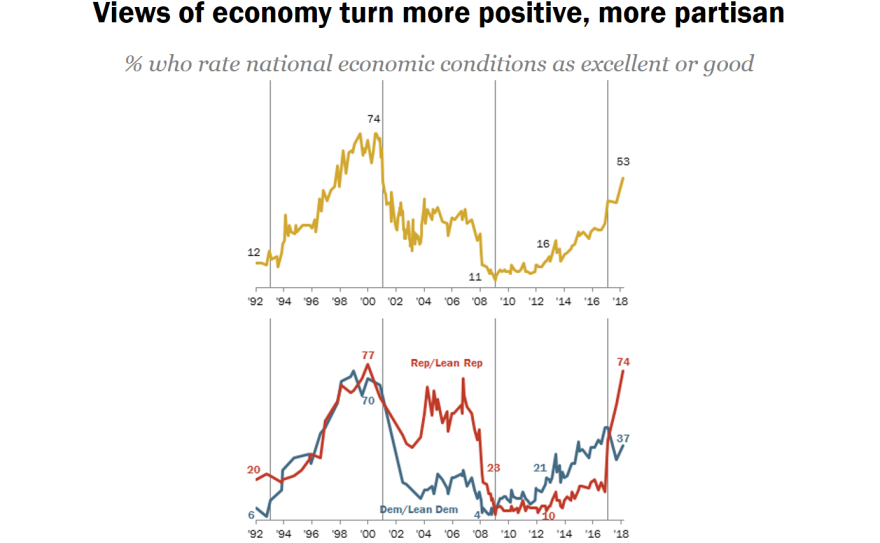 And Pew finds that views of the economy are the highest they've been since the early aughts.